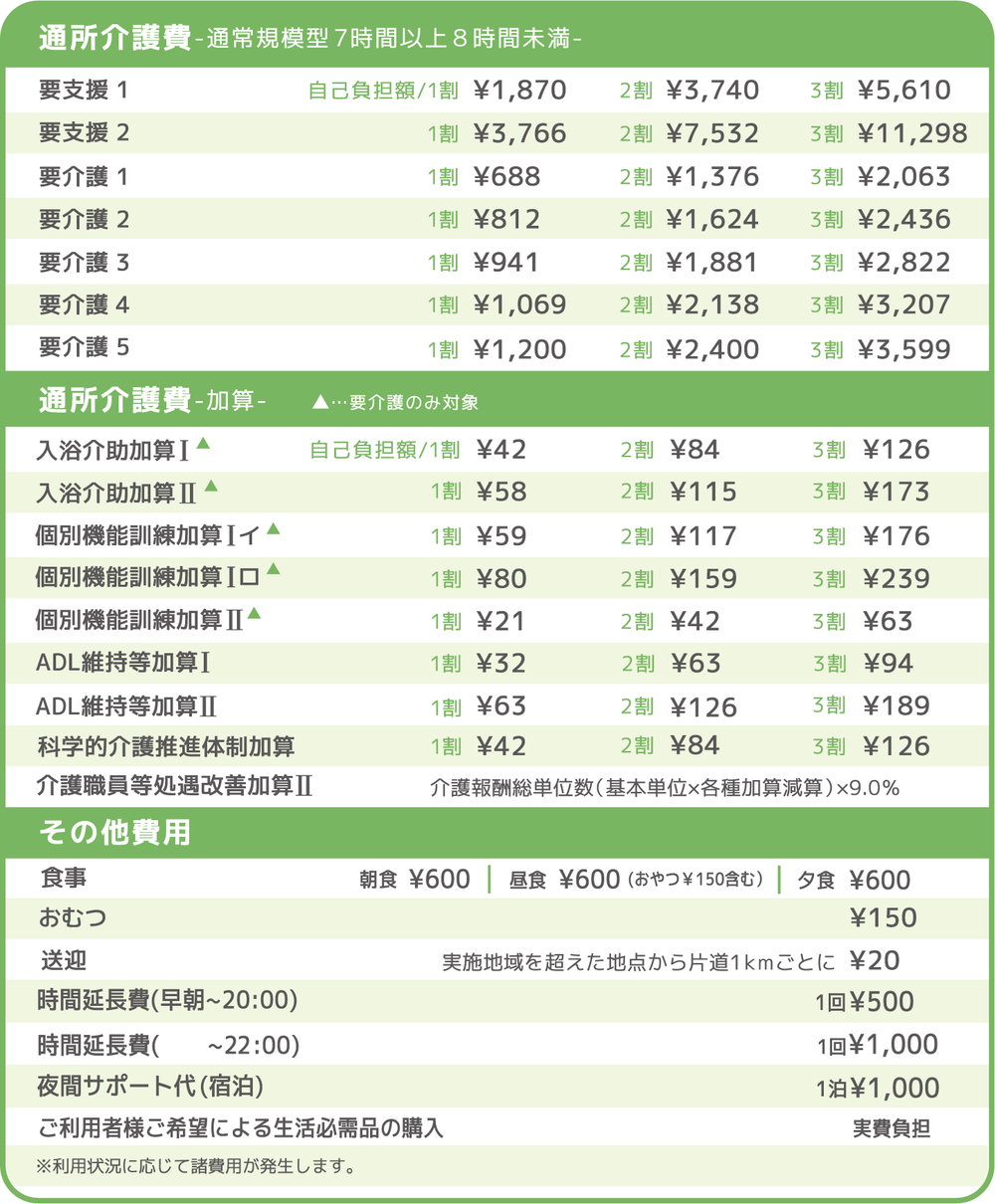 当施設は 9:15〜16:30 までの7-9時間請求のデイサービスとなっております。